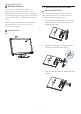 2. Setting up the monitor Install base stand 2. Setting up the monitor 1. Place the monitor face down on soft and smooth surface taking care to avoid scratching or damaging the screen. 2.1 Installation 2. Attach the base column with the monitor until it clicks into position. Package contents 236V4 Register your product and get support at www.philips.com/welcome Quick Start M4 236 V1L F70 G23 C 181 3 -8A 3.