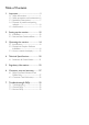Table of Contents 1. Important ������������������������������������������������1 1.1 1.2 1.3 1.4 Safety Information ������������������������������������������1 Safety precautions and maintenance ���6 Notational Descriptions �����������������������������7 Disposal of product and packing material ����������������������������������������������������������������8 1.5 AntiMicrobial �����������������������������������������������������9 2. Setting up the monitor �����������������������10 2.