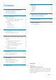 Contents 1 Important safety information General maintenance Recycling the product 2 Your new player What's in the box PC software loaded on the player Files loaded on the player Overview Controls Home screen Screen on/off 3 Get started Charge power Switch the player on or off 4 Music Transfer your PC music library to the player Find music on the player Find music by song information Play music Select play options 5 FM radio Tune in to radio stations Store prese