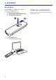 3. Alustamine Aku laadimine Seadmel MINI on sisseehitatud aku, mida saab laadida arvuti USB pesa kaudu. 1. Libistage USB ühendus välja. 1) Vajutage USB lahtilukustamiseks nuppu. 2) Libistage USB ühendus välja. 2. Ühendage MINI arvutiga 9 Te olete nüüd ülekandereþiimis. 8 Seadme sisse ja välja lülitamine Vajutage ja hoidke seadmel all B klahvi, kuni seade lülitub sisse või välja.