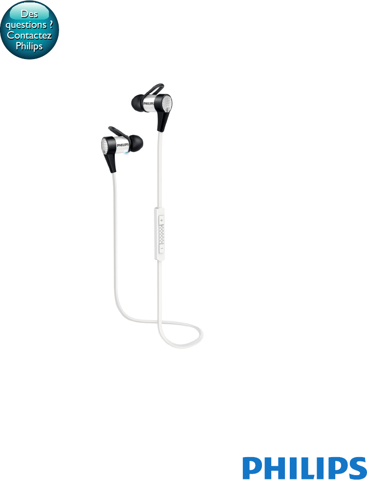 2 Vos écouteurs intra-auriculaires sans fil Félicitations pour votre achat et bienvenue dans le monde de Philips ! Pour bénéficier de tous les avantages de l'assistance Philips, enregistrez votre produit sur le site . www. philips.com/welcome. Avec ces écouteurs intra-auriculaires sans fil Philips, vous pouvez : • passer des appels mains libres et sans fil ; • écouter et contrôler vos morceaux sans fil ; • basculer entre les appels téléphoniques et la musique.