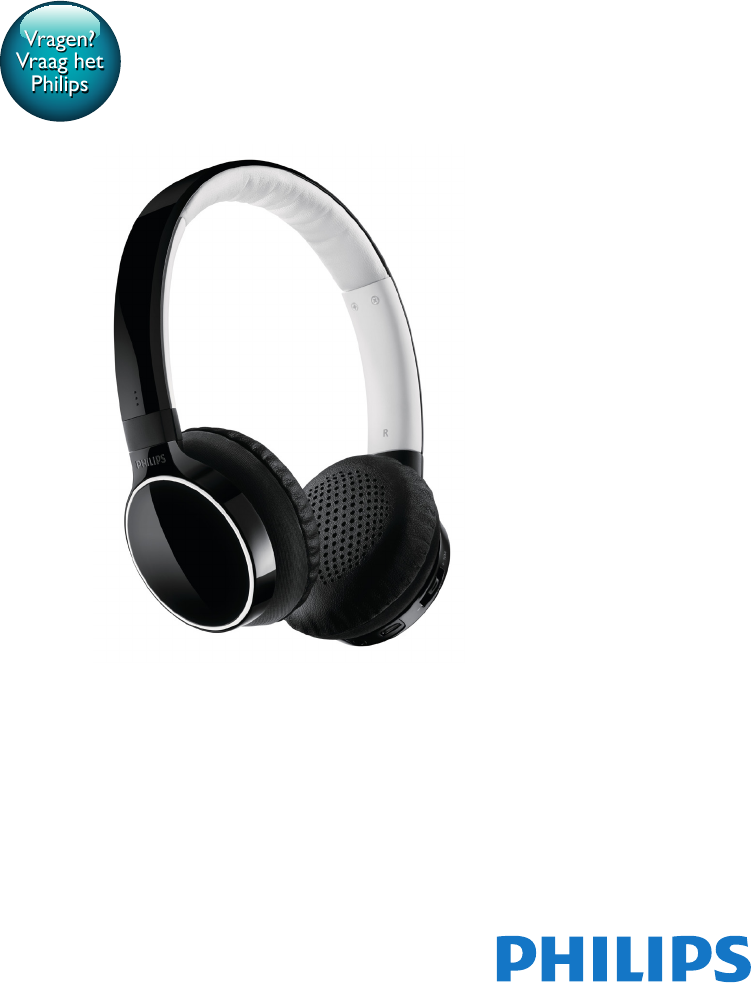2 Uw Bluetoothstereoheadset Gefeliciteerd met uw aankoop en welkom bij Philips! Als u volledig wilt profiteren van de ondersteuning die Philips biedt, kunt u uw product registreren op www.philips.com/ welcome. Met deze draadloze headset van Philips kunt u: • eenvoudig draadloos en handsfree telefoongesprekken voeren; • draadloos muziek beluisteren en bedienen; • schakelen tussen muziek en telefoongesprekken; • met een audiokabel naar muziek op apparaten zonder Bluetooth luisteren.