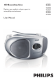 English Controls/Power Supply Congratula tions on your purchase and welcome to Philips! CAUTION – Visible and invisible laser radiation. If the cover is open, do not look at the beam. – High voltage! Do not open.You run the risk of getting an electric shock. The machine does not contain any userserviceable parts. – Modification of the product could result in hazardous radiation of EMC or other unsafe operation.