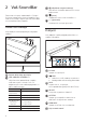 2 Vaš SoundBar Čestitamo na kupnji i dobro došli u Philips! Da biste u potpunosti iskoristili podršku koju nudi tvrtka Philips, registrirajte svoj Soundbar na www.philips.com/support. Glavni dio uređaja Ovaj odjeljak sadrži pregled glavnog dijela uređaja. (uključeno stanje mirovanja) Uključite ili SoundBar postavite u stanje pripravnosti. (Izvor) Odaberite ulazni izvor SoundBar-a. +/- (glasnoća) Povećajte ili smanjite glasnoću. Priključci Ovaj odjeljak sadrži pregled priključaka na uređaju SoundBar.
