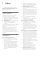 1 Važno ͻ Pročitajte s razumijevanjem sva uputstva prije upotrebe proizvoda. Ako je oštećenje izazvano nepoštovanjem uputstava, garancija neće biti važeća. ͻ Pomoć i podrška ͻ Za dodatnu onlajn podršku, posjetite www.philips.com/support da biste: ͻ preuzeli korisnički priručnik i brzi vodič ͻ gledali video uputstva (dostupno samo za određene modele) ͻ pronašli odgovore na često postavljana pitanja (ČPP) ͻ poslali nam pitanje e-poštom ͻ ćaskali sa našim predstavnicima podrške.