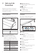 1 Važno 2 4 Korišćenje zvučnika Soundbar Pomoć i podrška 2 Uključivanje i isključivanje 12 Bezbjednost 2 Odaberite režime 12 Održavajte svoj aparat 3 Odaberite efekt ekvilajzera (EQ) 12 Briga o životnoj sredini 3 Podesite jačinu zvuka 13 Rad putem bluetootha 13 Oprez FCC i IC izjava za korisnike (samo SAD i Kanada) 2 4 12 Rad putem AUX / OPTICAL / Usklađenost 4 Šta je u kutiji 5 Rad putem USB-a 14 Vaš zvučnik Soundbar 6 5 Postavljanje na zid 15 Glavna jedinica 6 Priklj