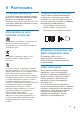 2 Ausīs ievietojamās Bluetooth austiņas Apsveicam ar pirkumu un kļūšanu par Philips klientu! Lai varētu izmantot visas Philips piedāvātā atbalsta priekšrocības, reģistrējiet savu produktu vietnē www.philips.com/welcome. Izmantojot šīs Philips ausīs ievietojamās bezvadu austiņas, jūs varat: • ērti izmantot bezvadu brīvroku sistēmu tālruņa zvaniem; • klausīties un kontrolēt bezvadu mūziku; • pārslēgties starp tālruņa zvaniem un mūziku.