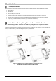 Pull Screw in Fig. 11: Remote display removal 5. Drill the three mounting holes in the marked distances of 70 mm, 2.76 in into each other (Fig. 12, left). Use M3, size no. 4 diameter screws. The screw heads must be between 5 ~ 7 mm, 0.2 ~ 0.3 in. Screw the bottom two screws into the wall where the display module is to be mounted and let the screw heads protrude 2 mm, 0.08 in. from the wall. Slide the display down on the protruding screw heads. Now insert and tighten the third screw at the top (Fig.