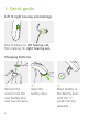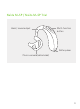 6.2 Putting on the hearing aid with dome, SlimTip or universal eartip 1. Place the hearing aid behind your ear. 2. Insert the earpiece into your ear canal. 3. If there is an anchor attached to the earpiece, tuck it into the bowl of your ear to secure your hearing aid.