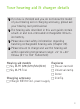 Contents Your hearing aid and charger 1. Quick guide 2. Parts of the hearing aid & charger Using the charger 3. Preparing the charger 4. Charging the hearing aids Using the hearing aid 5. Left & right hearing aid markings 6. Putting on the hearing aid 7. Removing the hearing aid 8. Multi-function button with indicator light 9. On/Off 10. Roger™ for conversation in noise and over distance 1 1. Connectivity overview 1 2. Initial pairing 13. Phone calls 14. Flight mode 15.