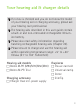 Contents Your hearing aid and charger 1. Quick guide 2. Parts of the hearing aid & charger Using the charger 3. Preparing the charger 4. Charging the hearing aids Using the hearing aid 5. Left & right hearing aid markings 6. Putting on the hearing aid 7. Removing the hearing aid 8. Multi-function button with indicator light 9. On/Off 10. Roger for conversation in noise and over distance 1 1. Initial pairing 12. Phone calls 13. Flight mode 14.