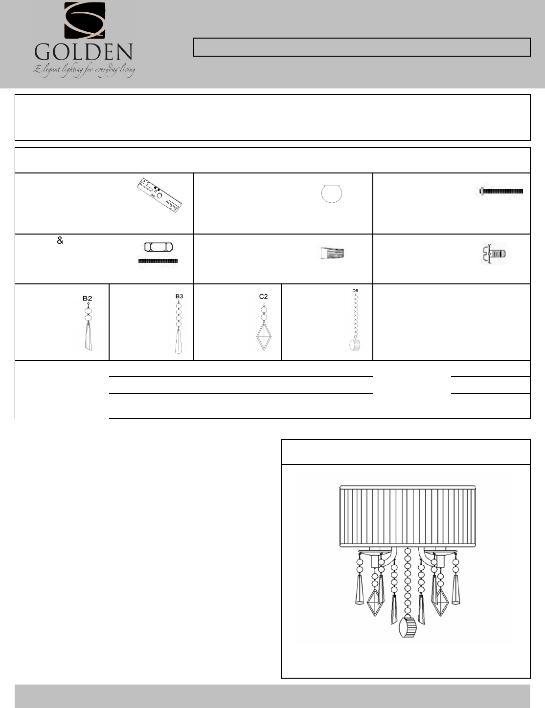 Please review the parts listing and check for all parts before assembling the fixture. If any parts are
