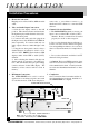 I N S TA L L AT I O N Installation Procedures 1. Electrical Connection: Plug the power cord into 120 Vac, 60Hz electrical outlet. camcorder or surveillance camera to an ultraband CATV channel or a standard UHF channel. 2. Video and Audio Input Connections: a. Slide the rear display switch to the ON position. This switch activates and deactivates the digital display and the channel selector buttons on the front panel. b.
