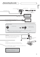 Connecting the units When connecting the external video component and the display RCA cables (sold separately) Rear monitor output (REAR MONITOR OUTPUT) To video input Display with RCA input jacks (sold separately) 13 cm (5-1/8 in.) This product To audio input Mini pin plug cable (sold separately) Rear audio output (REAR MONITOR OUTPUT(AUDIO)) RCA cables (sold separately) 17 cm (6-3/4 in.) Video input (VIDEO INPUT) External video component (sold separately) 13 cm (5-1/8 in.