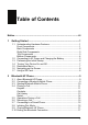 Table of Contents Notice ....................................................................................................iii 1 Getting Started ...............................................................................1 1.1 1.2 1.3 1.4 1.5 1.6 1.7 2 Understanding Hardware Features ................................................... 1 Front Components ............................................................................. 1 Back Components ..................................................