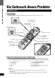 Fernbedienung und Pflege Vor Gebrauch dieses Produkts Zum Lieferumfang dieses Produkts gehört eine Fernbedienung, die einen bequemen Betrieb des Geräts ermöglicht. • Zur Bedienung die Fernbedienung in die Richtung des Signalempfängers am Farbdisplay (Sonderzubehör) weisen lassen. • Wenn die Fernbedienung nicht verwendet werden soll, setzen Sie sie fest in die dafür vorgesehene Halterung ein.