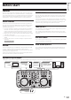 Basic Operation 3 Press the [LOAD] button to load the selected track onto the deck. Starting the system 4 Press the [f] button to play the track. ! Starting this unit When this button is pressed again during playback, playback pauses. Outputting sound MASTER OUT1 (TRS) R MASTER OUT2 L R MIC L VOL INPUT SELECT MIC AUX VOL AUX IN R ON OFF USB ! L 1 Operate the [GAIN] control and the channel faders to adjust the audio level output from the respective decks.