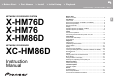 > Before Start > Part Names > Install > Initial Setup > Playback Advanced Setup | Firmware Update | Others NETWORK CD RECEIVER SYSTEM X-HM76D X-HM76 X-HM86D XC-HM86D NETWORK CD RECEIVER Instruction Manual Before Start What's in the box .......................................................................... 2 Part Names Front Panel ................................................................................... 4 Rear Panel (X-HM76D, X-HM86D, XC-HM86D) ..........................