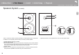 > Before Start > Part Names > Install > Initial Setup > Playback Advanced Setup | Firmware Update | Others Speakers System (X-HM76D, X-HM76) E N There is no distinction between left and right with the included speaker system. There will be no difference in sound quality whichever side you choose to put each speaker. 2 1 1 2 6. Speaker terminals: Connect speakers to the main unit with speaker cables. 1. Tweeter: Plays the mid range and treble. 2. Woofer: Plays the bass. 3.