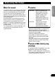 Additional Information Understanding built-in CD player error messages When problems occur during CD play, an error message may appear on the display. If an error message appears on the display, refer to the table below to see what the problem is and the suggested method of correcting the problem. If the error cannot be corrected, contact your dealer or your nearest Pioneer service center. Display Cause Remedy ERROR- 11, 12, 17, 30 Dirty disc. Clean disc. ERROR- 11, 12, 17, 30 Scratched disc.