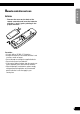 ENGLISH Remote controller and care Batteries • Remove the cover on the back of the remote controller and insert the batteries with the (+) and (–) poles pointing in the proper direction. ESPAÑOL DEUTSCH FRANÇAIS Precaution: • Use only AAA or IEC R03 1.5 V batteries. • Remove the batteries if the remote controller is not used for a month or longer. • Do not attempt to recharge the supplied batteries. • Do not mix new and used batteries.