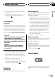 Section 03 Basic Operations ! If you cannot insert a disc completely or if after you insert a disc the disc does not play, check that the label side of the disc is up. Press EJECT to eject the disc, and check the disc for damage before inserting it again. ! You can eject the CD by pressing and holding EJECT with opening the front panel when the CD loading or ejecting cannot operate properly. ! If the built-in CD player does not operate properly, an error message such as ERROR-11 may be displayed.