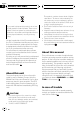 Appendix Additional Information ! To clean a CD, wipe the disc with a soft cloth outward from the center. ! If you insert a CD-RW disc into this unit, time to playback will be longer than when you insert a conventional CD or CD-R disc. ! Read the precautions with CD-R/CD-RW discs before using them. ! If the heater is used in cold weather, moisture may form on components inside the CD player. Condensation may cause the CD player to malfunction.