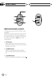 Section 09 Audio Adjustments 1 6 5 43 2 1 Audio display Shows the audio adjustment status. 2 CUSTOM indicator Shows when custom equalizer curve is currently selected. 3 SW indicator Shows when the subwoofer output is turned on. 4 Bass booster indicator Shows when the bass boost is in effect. 5 Loudness indicator Appears in the display when loudness is turned on. 6 FIE indicator Shows when the front image enhancer is turned on. % Press AUDIO to display the audio function names.