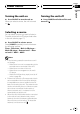 Section 05 RDS 3 Press b to turn AF off. Press b and AF :OFF is displayed. Notes ! Only RDS stations are tuned in during seek tuning or BSM when AF is on. ! When you recall a preset station, the tuner may update the preset station with a new frequency from the station s AF list. (This is only available when using presets on the FM1 or FM2 bands.) No preset number appears on the display if the RDS data for the station received differs from that for the originally stored station.