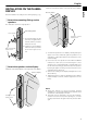 Nederlands INSTALLATIE OP HET PLASMADISPLAY Voer de installatie uit volgens de onderstaande stappen 1 t/m 2. Bevestig de module met de aanduiding “LEFT” (links) aan de linkerkant van het display (van voren gezien). Plasma display 1 Bevestig de montagehulpstukken op de luidsprekers. De afbeelding laat de rechterluidspreker zien. Montageplaat Voor de bovenkant Zeshoekige schroef 1 De bovenste montagedelen zijn voor de rechter- en de linkerkant verschillend. Zorg ervoor dat u ze juist bevestigt.