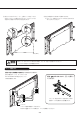 ③ Catch the hooks on the top of the speakers to the partially tightened screws, then line up the holes in the hooks on the bottom of the speakers with the screw holes on the bottom of the display and partially tighten the included screws (M4) in them. ④ Fully tighten the four partially tightened screws. *Push the speaker against the display while driving the screw. Screws (M4) ● When the speakers are installed on the display, do not move the unit by lifting up the speakers.