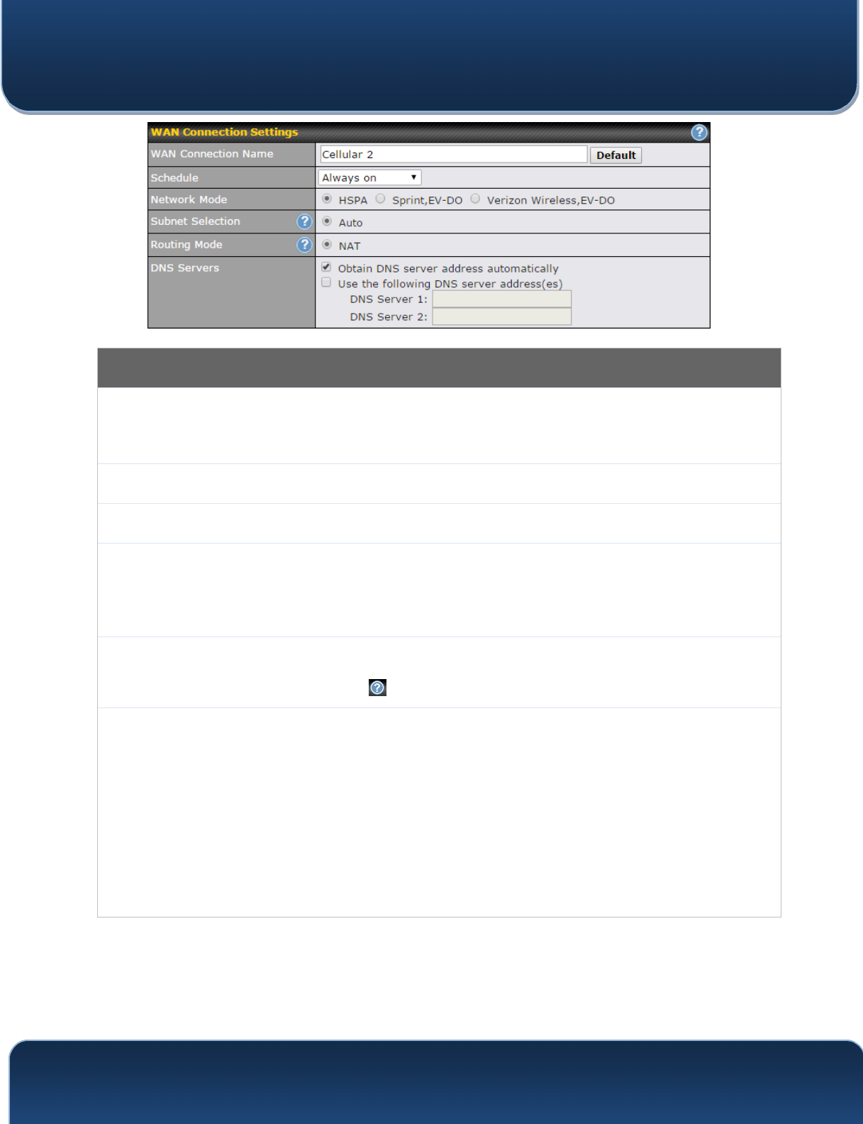 server addresses for this WAN connection into the DNS server 1 and DNS server 2 fields.