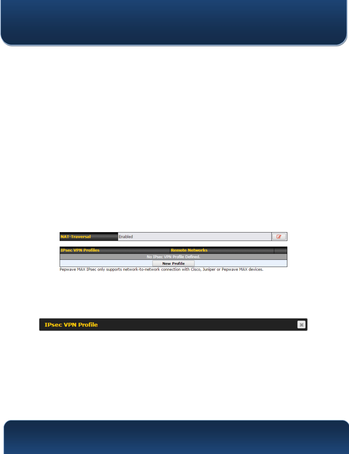 A NAT-Traversal option and list of defined IPsec VPN profiles will be shown. NAT-