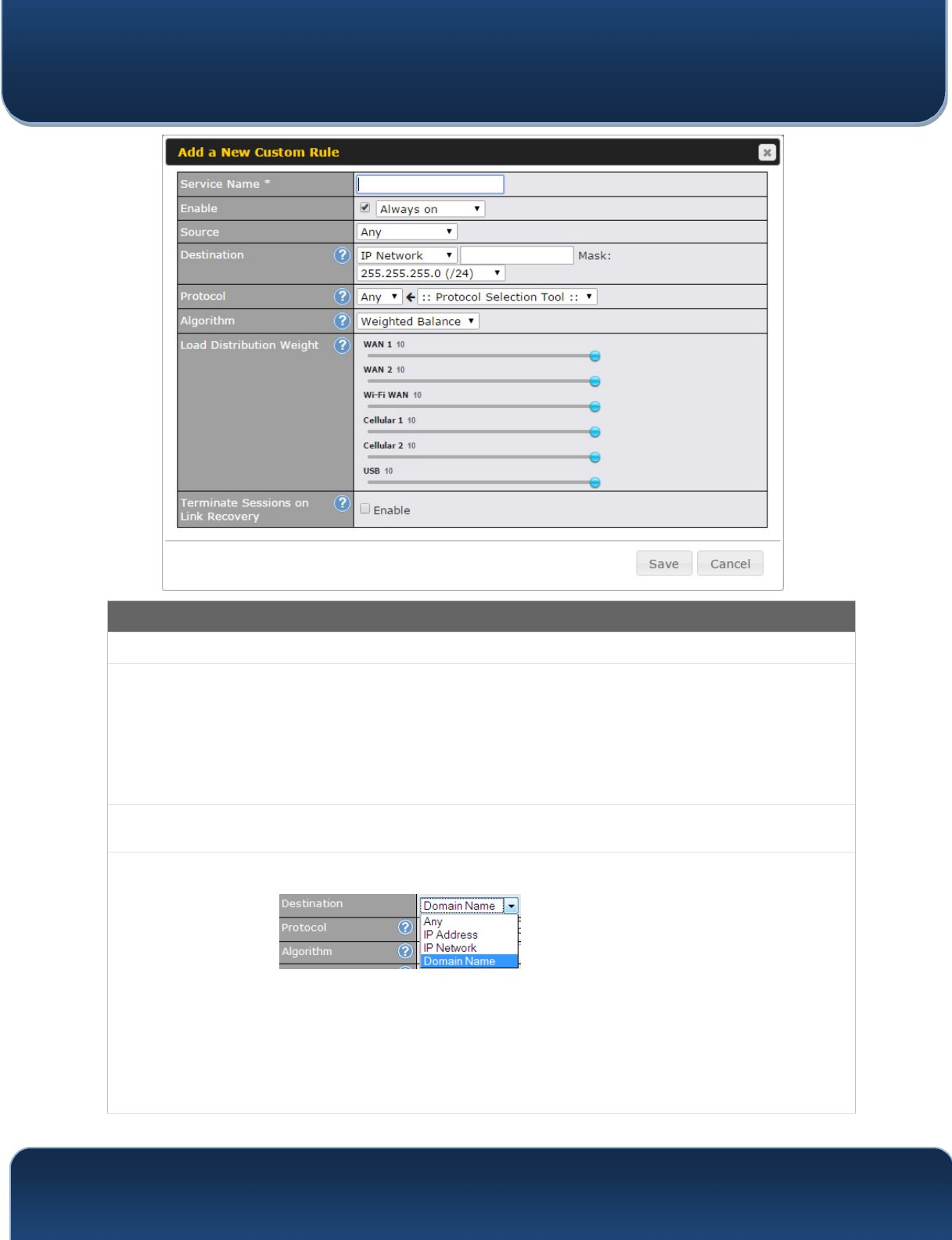 not take effect: the Pepwave router disregards the other parameters of the rule.
