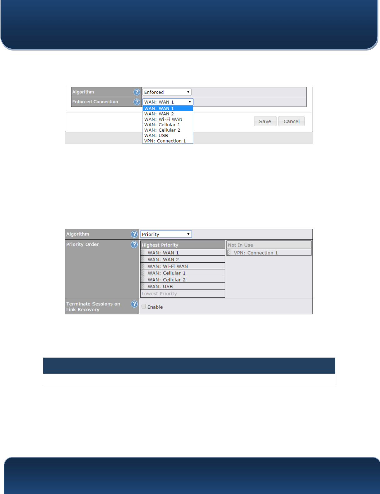 routing the specified type of traffic. A lower priority WAN connection will be used only