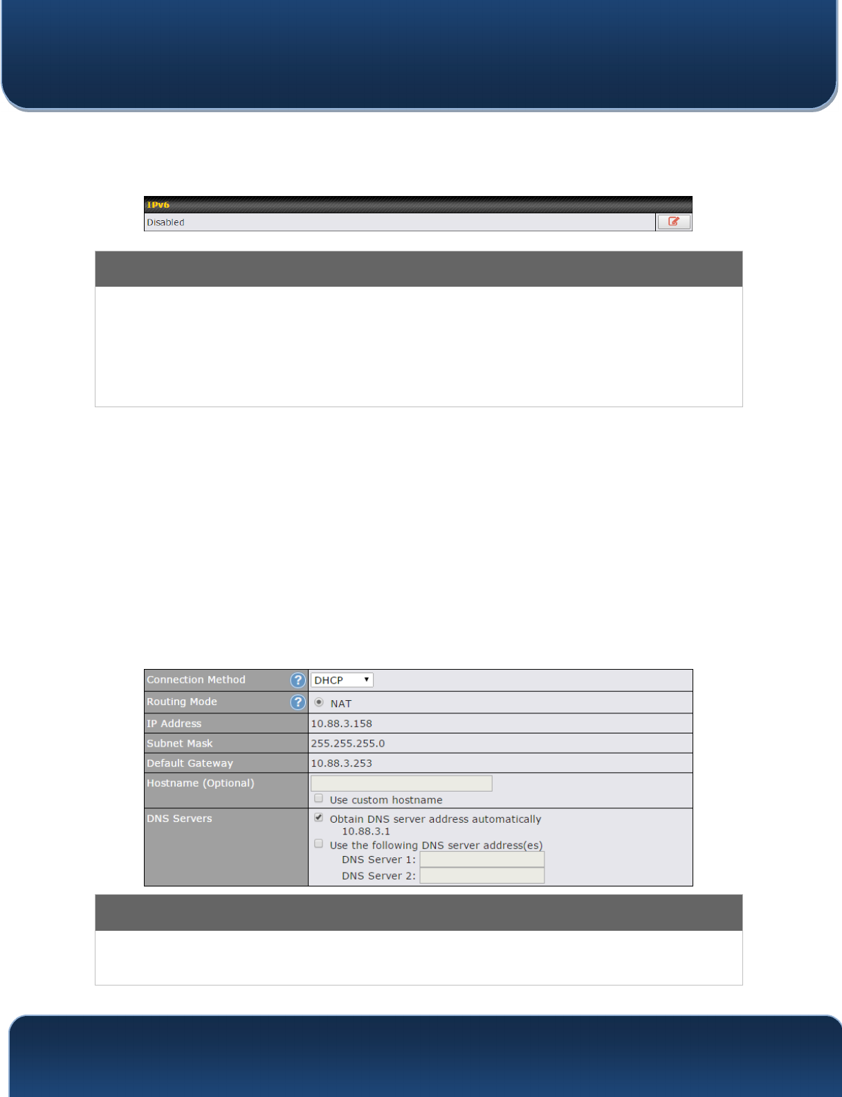 can choose which WAN will support IPv6. To enable IPv6 support on a WAN, the WAN router