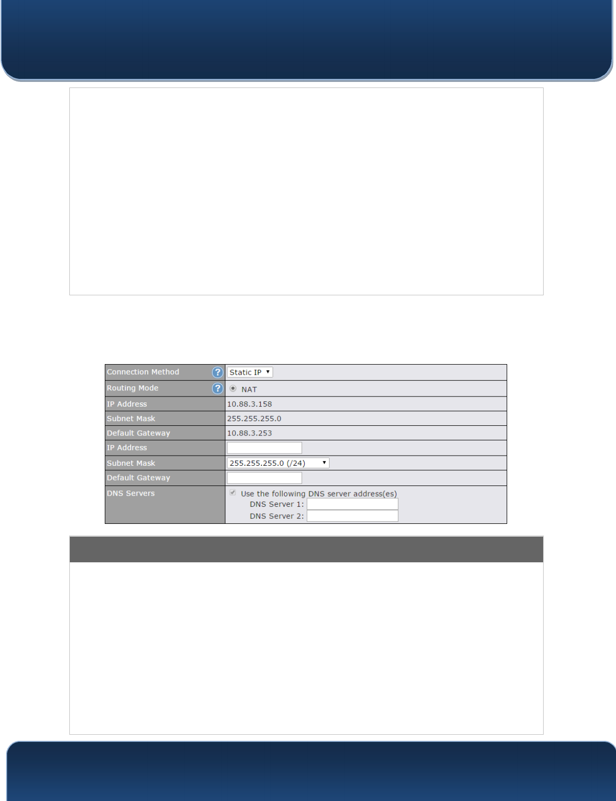 The static IP connection method is suitable if your ISP provides a static IP address to