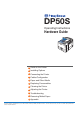 DP50S Operating Instructions Hardware Guide 1 Guide to the Printer 2 Installing Options 3 Connecting the Printer 4 Cables Configuration 5 Paper and Other Media 6 Replacing Consumables 7 Cleaning the Printer 8 Adjusting the Printer 9 Troubleshooting 10 Removing Misfed Paper 11 Appendix Read this manual carefully before you use this machine and keep it handy for future reference. For safe and correct use, be sure to read the Safety Information before using the machine.