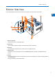 Exterior: Side View Exterior: Side View This section explains names and functions of the parts on the rear side of the printer. 1 2 4 1 5 3 8 7 6 1. Expansion Card Slots Remove the cover to install SD cards. 2. Ethernet Port Use a network interface cable to connect the printer to the network. 3. USB Port A Connect external devices to the printer, such as a digital camera. 4. Controller Board Slide this out to install options such as the SDRAM module, hard disk, or Gigabit Ethernet board. 5.