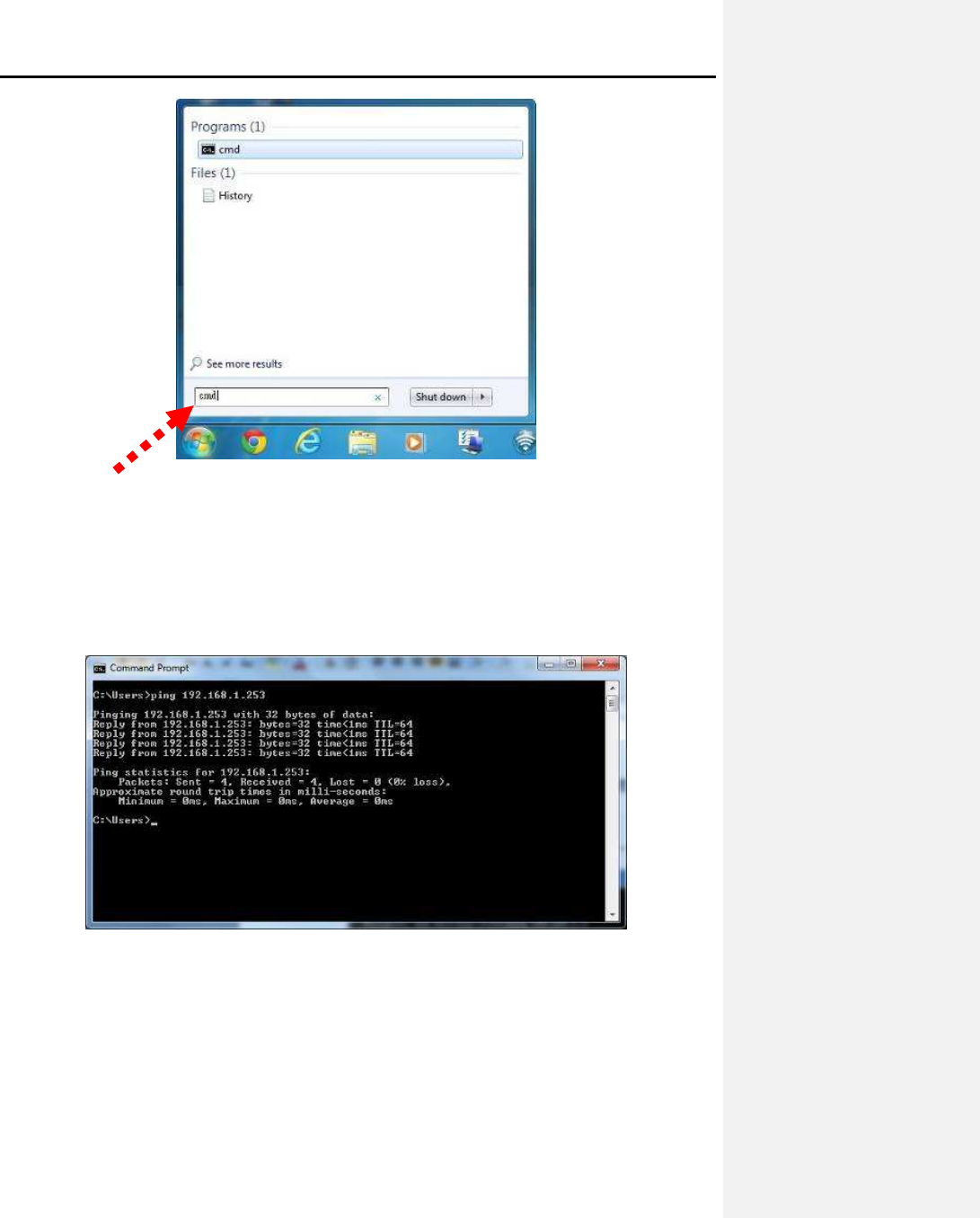 3. Open a command prompt and type ping 192.168.1.253, and then press Enter.