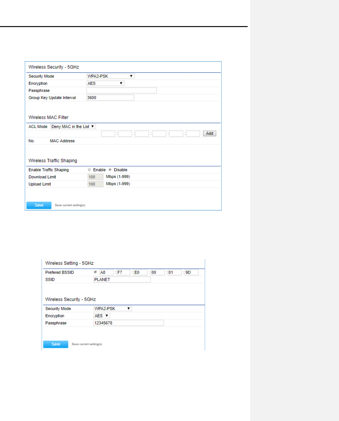button in the “Wireless Settings – 5GHz”