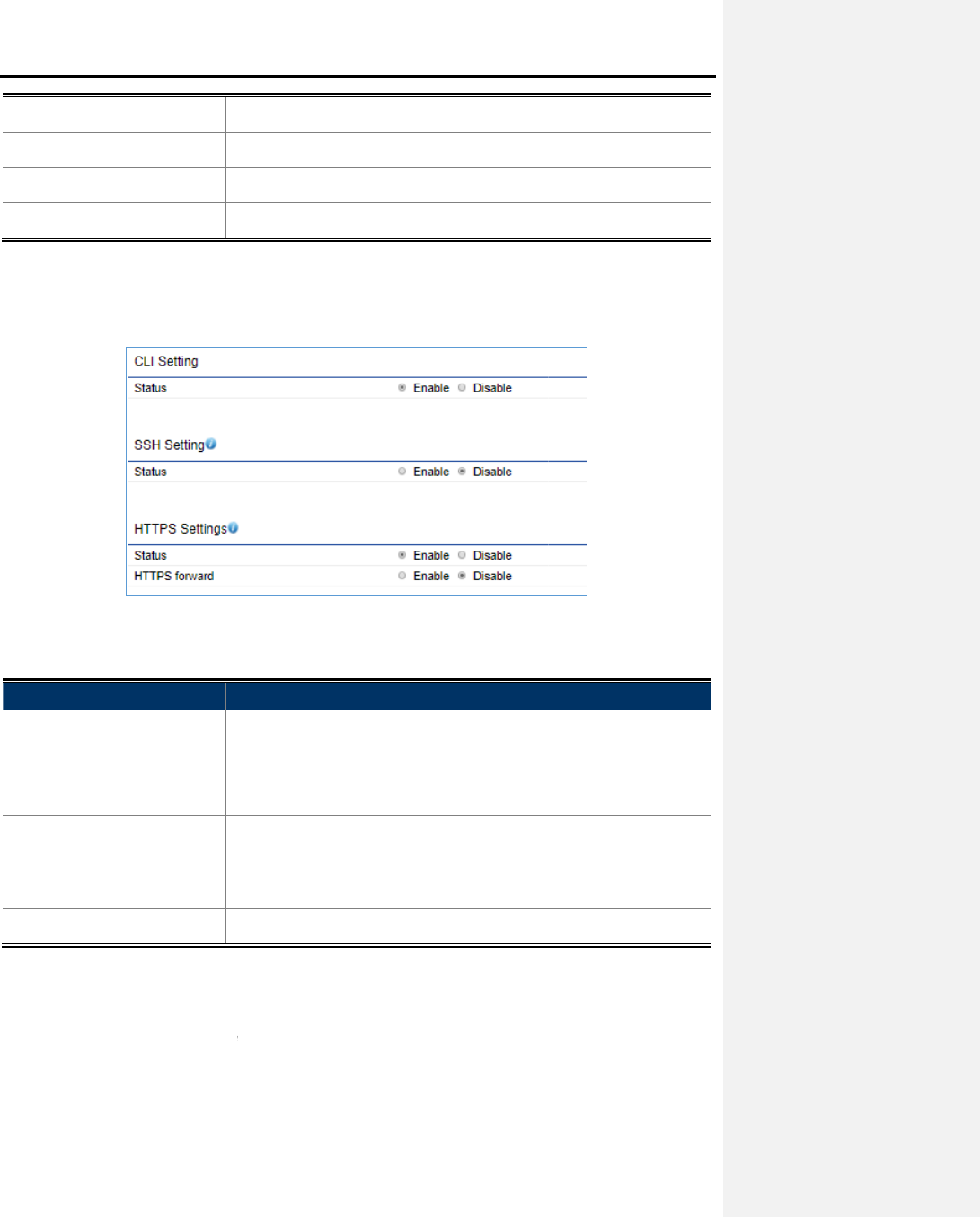 CLI/SSH/HTTPS Settings