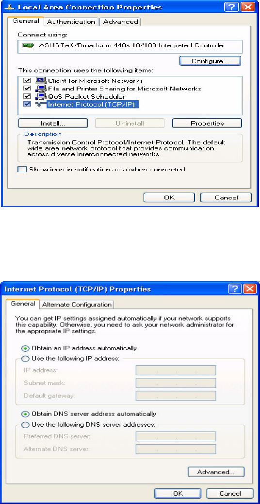 5. Select the Obtain an IP address automatically and the Obtain DNS