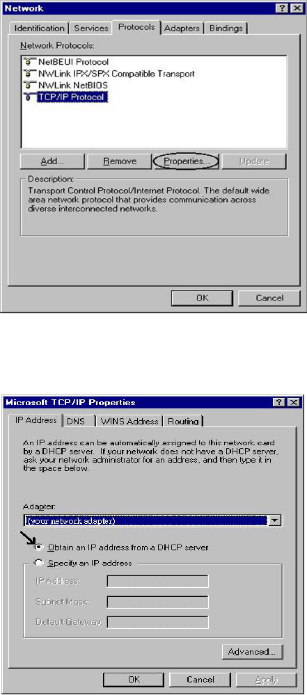 2. Select TCP/IP Protocol and click Properties.