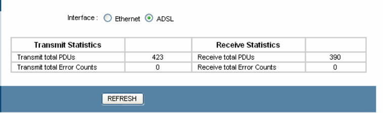 transmitted or received across the ADSL connection. Click on REFRESH to update the