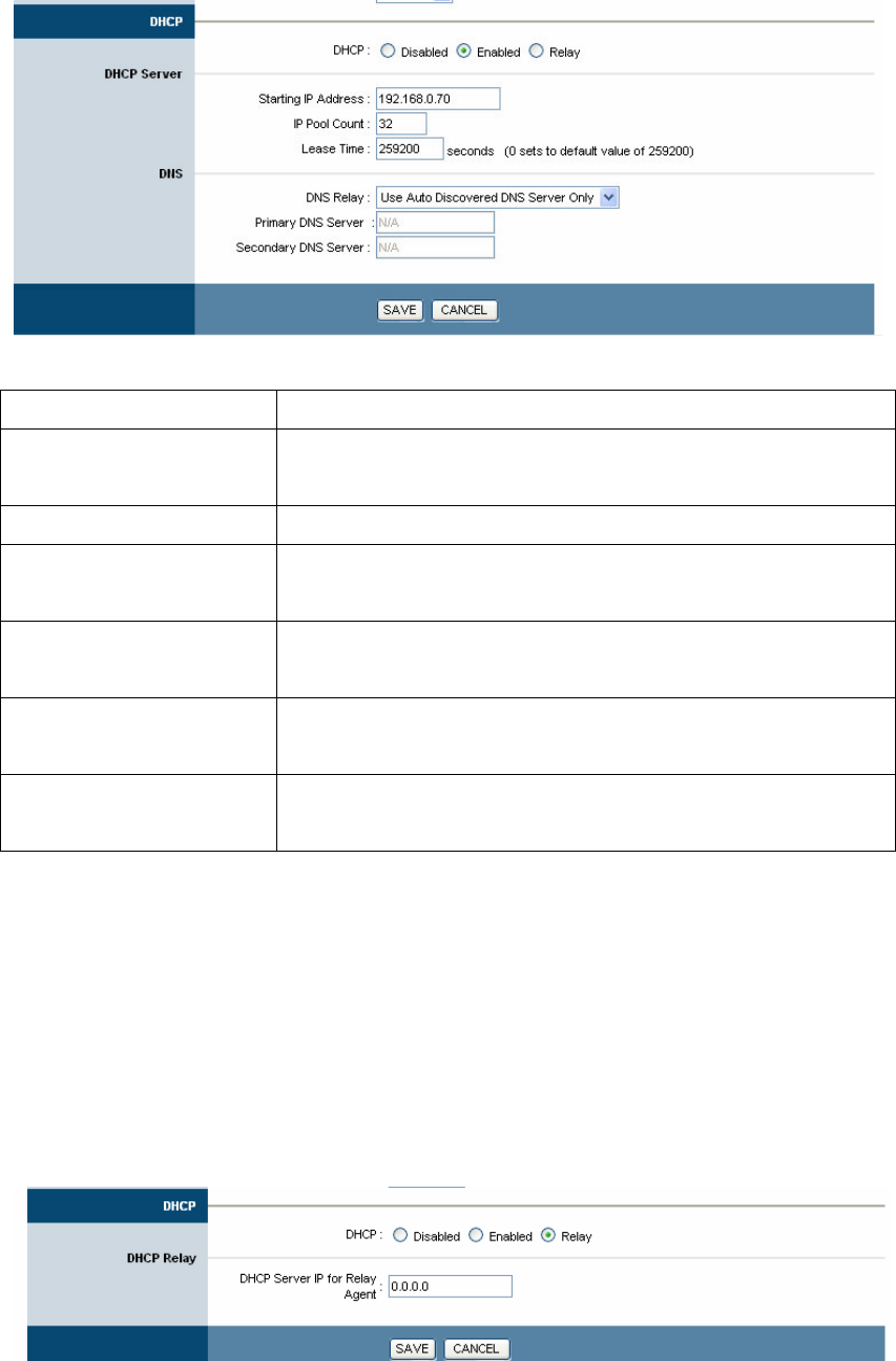 DNS Relay Select the DNS relay option you wish to use from the