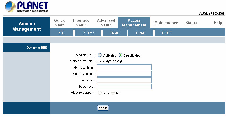 SAVE: Click SAVE to save the setting to the ADSL Router.