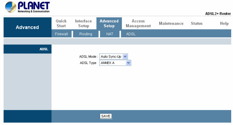 The option has Auto Sync-up, ADSL2+, ADSL2, G.DMT, T1.413, G.LITE