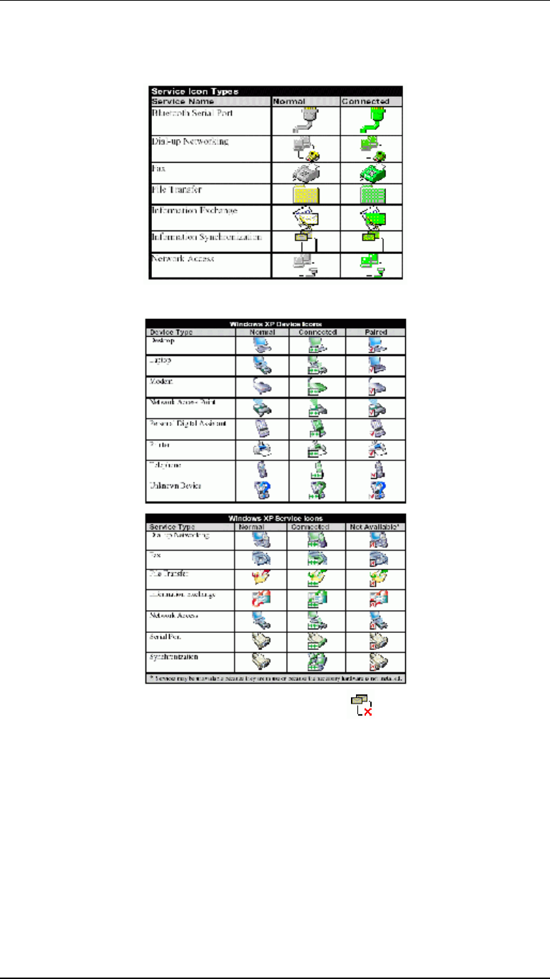 Icons for services that are not available have a red "X" in their lower-right corner.