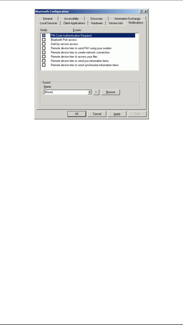 1. From the Bluetooth Configuration Panel, select Notifications tab.